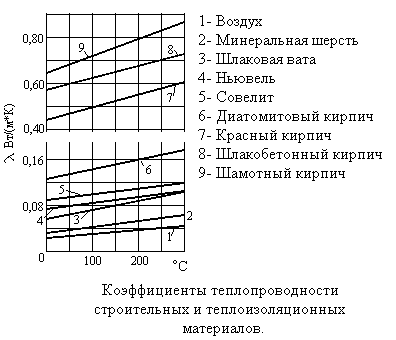 Повышение эффективности теплопроводности достигается применением высокопористых материалов и устройством многослойных конструкций с воздушными прослойками.