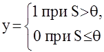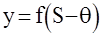 Выходной сигнал нейрона y определяется путем пропускания уровня возбуждения S через нелинейную функцию f: