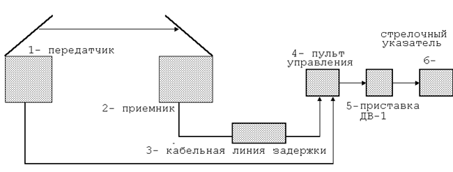 С помощью пульта управления, содержащего электронно-лучевую трубку, оператор может вручную измерять время запаздывания эхо-сигнала, отраженного облаком, относительно зондирующего сигнала, излученного передатчиком. Измерение производится с помощью схемы компенсации, которая содержит регулируемый источник питания и позволяет менять напряжение на правой по схеме пластине ЭЛТ (рис.1).