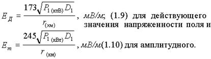 Единицы измерения величин, входящих в формулы (1.5) - (1.7), не очень удобны для практического применения, так как напряженность поля выражена в В/м , а расстояние - в м . Выражая мощность в кВт, расстояние - в км , а напряженность поля - в мВ/м , получаем