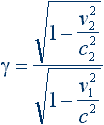 x2 = (x1 – u01 t1 )/γ; y2 = y1 ;z2 = z1 ; t2 = γ t1 ; u02 = –u01 /γ2 ; |
