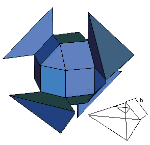 Но других правильных выпуклых многогранников больше нет. Да, и составить многогранник, состоящий только из правильных шестиугольников невозможно. Видимо, следует обратить внимание на иные многогранники, а именно выпуклые Параллелоэдры (Тела Федорова). И среди них мы заметим Гексагон, многогранник, представляющий собой прямую призму с правильным шестиугольником в основании, и высотой, равной, стороне шестиугольника и дуальный ему Додекатетр, похожий на Октаэдр, только граней у вершины шесть и грани представляют собой равнобедренные треугольники с основанием равным √3/2 от длины боковой стороны.