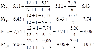 | № pi | 2,46 | 6,43 | 10,37 |