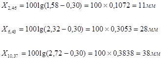 åРт i определяем по графикам (рис.1,2). Для этого измерим в мм ординаты Yti от опытных точек X2 , X5 , X8 до пересечения с соответствующими интегральными прямыми. По таблицам 9,10/2/ определяем значение åРТ i и данные заносим в таблицу 3.