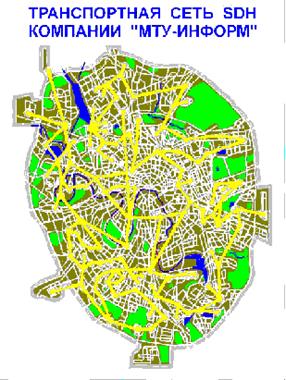 Транспортная сеть “Компании МТУ-Информ” построена на оборудовании SDH производства компании (Израиль). В узлах сети расположены синхронные цифровые мультиплексоры (Synchronous Digital Multiplexer — SDM), находящиеся в зданиях АТС АО “МГТС” и связанные друг с другом магистральными оптоволоконными кабелями.