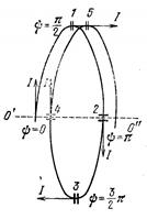, чтобы поля любой пары противоположных элементов (1-3,2-4) спирали совпадали по фазе и полностью складывались в точках оси 0'0", которая равноудалена от контура витка. Это объясняется тем, что в пределах одного витка амплитуды тока практически одинаковая, а различие в фазе на угол