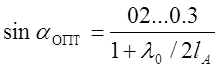 = 1,2 ... 1,3, определим из выражения (2) угол подъема спирали, соответствующий оптимальным условиям работы антенны
