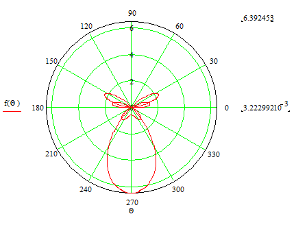 Используя приложение ”MathCAD 7 professional” получил следующий вид диаграммы направленности антенны: