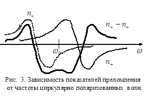 Необходимо отметить, что для циркулярно поляризованных волн, распространяющихся вдоль магнитного поля, дисперсионная кривая и спектральный контур линии поглощения имеют для данной среды тот же вид, что и при отсутствии магнитного поля, отличаясь только сдвигом по шкале частот на