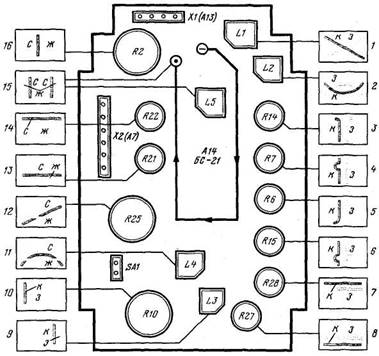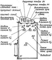 Рис.8. Расположение органов регулировки в модуле цветности МЦ-2.