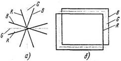 Рис.9. Нарушение сведения в кинескопах с компланарным расположением ЭОП.