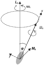 где Lk = |Lk |; Ix , Iy – моменты инерции волчка относительно осей x и y; φ – угол, образованный векторами Lk и Ωk .
