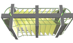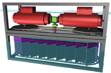 Размеры блоков не ограничены, в зависимости от необходимой мощности и размеров реки. Как пример, возьмём: ширина - 1200мм., глубина-700мм., длина - 1250мм., т.е. объём-1куб. метр, он позволяет разместить в нём 3 установки с 17 лопастями в каждой, имеющих, в свою очередь: ширину - 150мм. и глубину-500мм., т.е. каждая площадью --0,075кв.м., а так как две лопасти всегда будут находиться на поворотах, тогда общая рабочая площадь одной установки - I,125кв.м., а сумма 3-х в одном каркасе (1куб.м. потока) будет-3,375кв. метра!!!