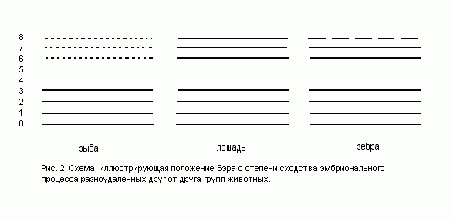 Очевидно, что если наши формальные схемы являются отражением разумного замысла Создателя живой природы, то процесс индивидуального развития организма должен иллюстрироваться этими схемами, как «заполнение» их уровней начиная от нулевого – общебиологического, и кончая восьмым – видоспецифичным, то есть «снизу вверх».