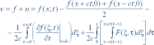 | u = – f(x;0) и ∂u/∂t = – ∂f / ∂t при t = 0 | (4) |