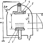 J—плотность разрядного тока; р—давление рабочего газа; L— расстояние «катод—подложка»; k—постоянная, зависящая от рода газа и материала катода.