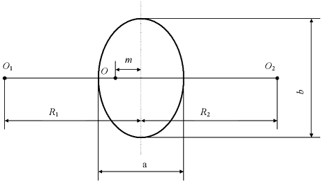 Центры О1 и О2 а также, радиусы R1 и R2 , соответственно, относятся к ведущему и ведомому телам качения; m– смещение нескользящей точки О, тем большее, чем меньше β.