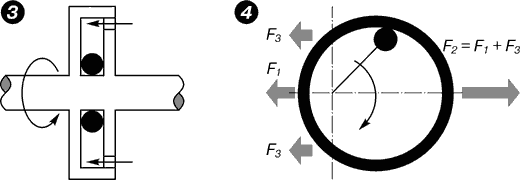 Рис. 4. При росте длины плеча и постоянных оборотах центробежные силы вырастут, но их уравновесят силы реакции в приводе