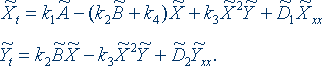 , Yt =BX – X2 Y + D2 Yxx . |