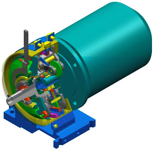 Опытный образец описанного вариатора в виде мотор-вариатора был рассчитан и спроектирован авторами данной работы и изготовлен на АМО ЗИЛ по совместному тематическому плану с Московским государственным индустриальным университетом (МГИУ). При расчете вариатора были использованы созданные при участии авторов методики и программы [3]. Проектирование вариатора осуществлялось в системе трехмерного моделирования CATIA (рис.4). Заметим, что опытный образец мотор-вариатора, имеющий самостоятельное значения для общепромышленного назначения, для АМО ЗИЛ является первым этапом создания автоматической бесступенчатой коробки передач, в частности для автобуса ЗИЛ-3250.