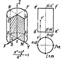 Плоскости XOZ и YOZ пересекают его по параллельным прямым ED, FK, NP, LM, а плоскость XOY и ей параллельные – по окружностям DPKM и (ENFL).