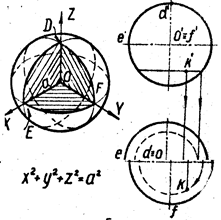 Плоскости XOZ и YOZ пересекают их по эллипсам DE и EF, а плоскость XOY – по окружности DF.