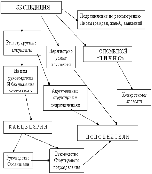 по важнейшим вопросам деятельности организации (учреждения). Остальные документы передаются руководителям структурных подразделений организации (учреждения) или непосредственно исполнителям. При наличии в учреждении подразделения по рассмотрению писем граждан, заявления и жалобы направляются в него из экспедиции.