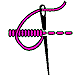 4. После закрепления рабочую нитку уложите петлей в направлении слева вниз направо, а иглу вводите в ткань в середине первой петли, в точку, из которой вышла нитка на лицевую сторону ткани.