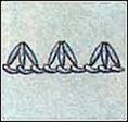 1. В направлении справа налево сделайте первый стежок на ткани длиной 4 нити. 2. На лицевую сторону иглу выкалывайте левее первого стежка на 8 нитей и выполняйте второй стежок длиной 4 нити в направлении слева направо. 3. Лицевая сторона такая же, как у шва «вперёд иголку», но стежки получаются более выпуклые, рельефные. 4. Этот способ выполнения шва применяют в белой глади для выполнения мотивов швом россыпь, а также для выполнения контура рисованных узоров.