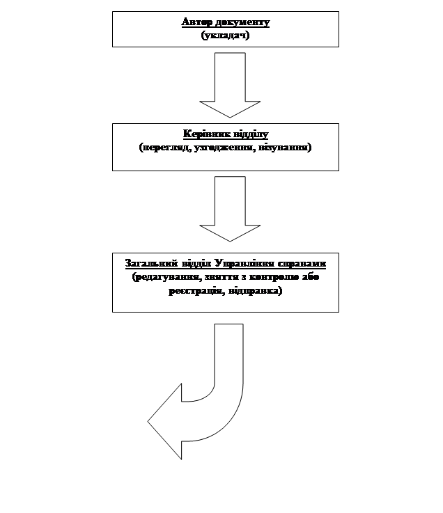 Відповідальність за правильну реєстрацію вхідних та внутрішніх документів та своєчасну відправку їх адресатам, передачу на розгляд керівництву, конкретним виконавцям покладається на загальний відділ Управління справами. [4,C. 8-10]