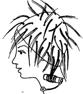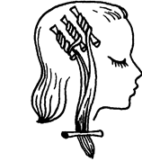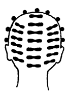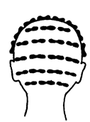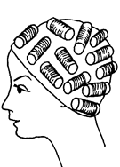 Для улучшения формы и объема прически часто используют частичную химическую завивку на верхних участках головы – теменной и верхнезатылочной зонах. Распределяют коклюшки по кругу в виде звезды (рис. 2.7). По контуру головы химическую завивку не делают. Если в прическе должна быть бахрома, то на пряди бахромы не выполняется химическая завивка. Такой метод дает определенный эффект и большое количество разнообразных причесок.