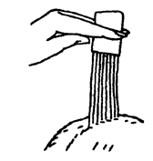 Чтобы защитить чувствительнее кончики волос от действия препарата, а заодно и облегчить себе работу, можно при накручивании воспользоваться кусочками салфетки или кальки размером 4х6 см. В этом случае концы хорошо расчесанной пряди волос, уже распределенные по ширине, приложите к бумаге и затем согните бумагу пополам. После того как волосы на затылочном участке будут накручены, их смачивают препаратом для завивки (рис. 1.3).