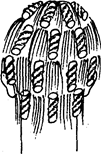 Затем пряди делят еще на три и каждую накручивают на коклюшки с меньшим диаметром (рис. 2.17). Все три коклюшки закрепляют вместе (рис. 2.18).