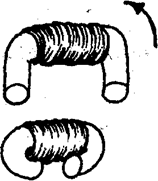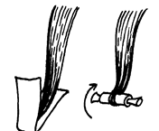 Для создания глубокой волнистости волос применяется накрутка на две бигуди. Первую прядь накрутить на три оборота (рис. 2.19). Затем подложить вторую бигуди или коклюшку и накрутить в противоположном направлении (рис. 2.20).