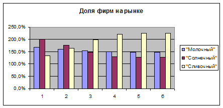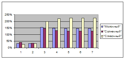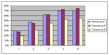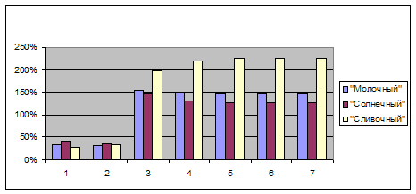 2) исследования, касающиеся доли рынка фирмы, говорят о постепенном вытеснении фирмой её основных конкурентов – марок «Солнечный» и «Сливочный»;