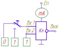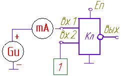 При снятии входной характеристики на один из входов подают изменяющееся напряжение в пределах 0…Е n и наблюдают в его цепи ток. При этом все остальные входы объединяют и присоединяют к источнику с уровнем напряжения, соответствующим логической единице
