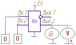 При снятии выходной характеристики ключа (рис. 9-12) в его входной цепи создают комбинацию входных сигналов, переводящую исследуемый ключ в состояние логического нуля или логической единицы. Выходную цепь ключа присоединяют к источнику тока и, изменяя нагрузочный ток, регистрируют изменения выходного напряжения. Схемы получения выходных характеристик ключей показаны на рис. 9 и 10 для ТТЛ-ключей и рис.11 и 12 для ЭСЛ-ключей.