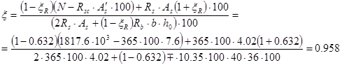 водить в зависимости от соотношения между значением относительной высоты сжатой зоны бетона