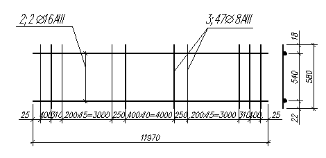 5.а. Контрольная часть (опорное сечение), отрицательный момент.