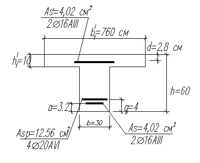 Расчет ведется для стадии передачи напряжения на бетон: изготовление конструкции на месте ее расположения.