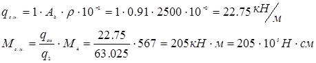 Примем нормативное значение изгибающего момента в среднем сечении 80% от расчетного