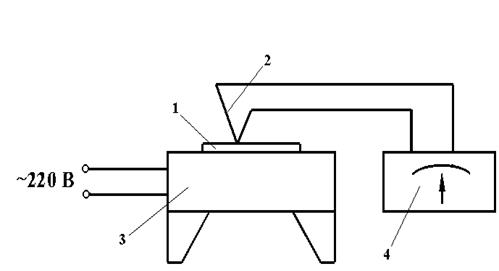 1 – образец, 2 – термопара, 3 - электрическая плитка,