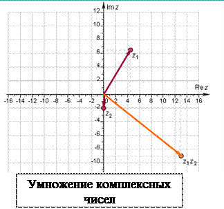 Все указанные выше операции можно доказать с помощью выполнения действий на координатной плоскости. На приведенных ниже графиках показаны примеры действий над комплексными числами.