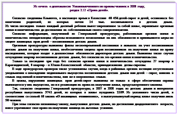 В результате был выполнен ситуационный анализ семейного неблагополучия в Казахстане по имеющимся источникам информации.