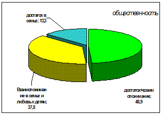 1. Родители более старшего возраста (r=0,411), принимает наиболее важные решения, в том числе материальные - женщина: a. В обязанности жены входит: принятие важных решений (0,685), принятие глобальных для семьи решений (покупка дорогих вещей, вопросы переезда семьи, решение что делать, если случилась беда и др.) - 0,485, воспитание и контроль детей - 0,437, материальное обеспечение семьи - 0,400; b. В обязанности мужа входит - следить, чтобы семья была дружной, чтобы не было скандалов (0,596), обеспечение благоприятного климата в семье (создание дружественной атмосферы, понимания друг друга) - 0,497. c. Если ребенку нужны деньги, то он не попросит их у папы - 0,421, а попросит у мамы (0,593); 2. В семье хорошие отношения между членами: a. в семье есть традиции, особые семейные праздники - 0,502, b. отношения с супругом (супругой) и детьми полностью устраивают - 0,410 - 0,409 соответственно, 3. Главное в воспитании детей - приобщение к здоровому образу жизни (0,575) и развитие умственных способностей (0,456), родитель читал книги, журналы, газеты по воспитанию детей (0,432), 4. У ребенка нет материальных проблем (доступны секции, кружки - 0,495, есть компьютер - 0,494); |