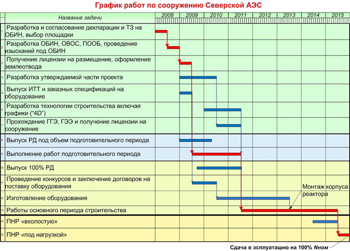 · основной период строительства энергоблоков Северской АЭС — 2011 – 2017 годы;
