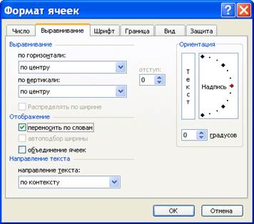 Рис. 1.2. Форматирование ячеек — задание переноса по словам