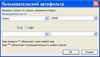В открывшемся окне Пользовательский автофильтр задайте условие «Больше 4000» (рис. 1.6).