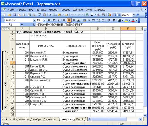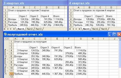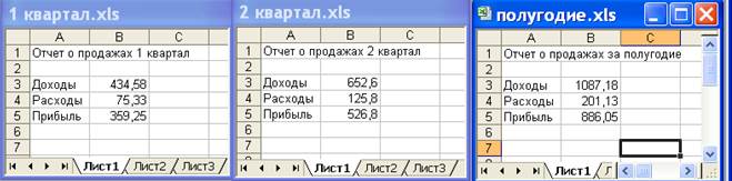 5. Для расчета полугодовых итогов свяжите формулами файлы «1 квартал» и «2 квартал».