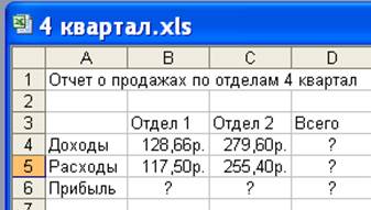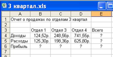 и проведите расчет Прибыли: Прибыль = Доходы - Расходы. Сохраните файл под именем «1 квартал».